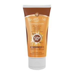 کرم ضد آفتاب فاقد چربی +SPF 50 سان سیف بدون رنگ مقدار ۵۰ میلی گرم